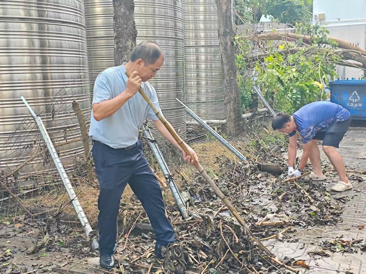 此次大清扫活动,公司党委负责人切实担负起第一责任人职责 ,靠前指挥,深入一线,带领全院师生开展清扫工作。党委书记和公司领导班子以身作则,充分发挥“主心骨”作用、冲锋在前、勇于担当, 广大党员积极作为、听从指挥,争当先锋表率,大家手持扫帚、锄头、铁锹等工具,清理台风过后堆积的落叶、断枝、垃圾等,不放过任何一处卫生死角。