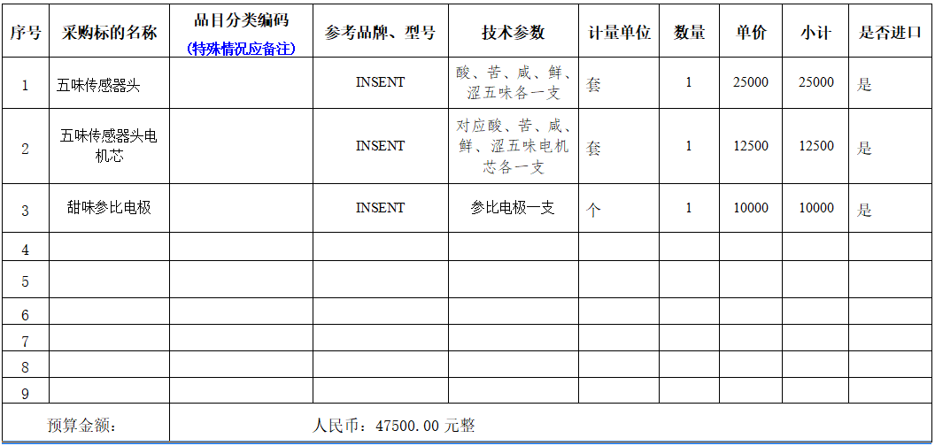 多功能味觉营养检测系统传感器等耗材项目采购,详情见伟德国际1946亚洲版多功能味觉营养检测系统传感器等耗材项目采购清单。